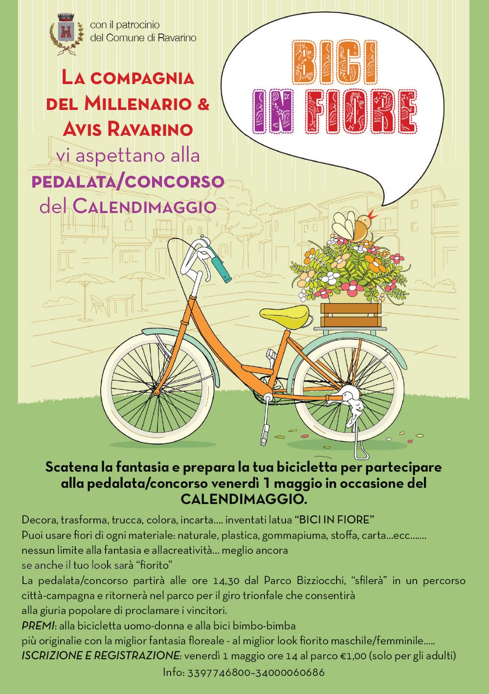 La Compagnia del Millenario e Avis Ravarino vi invitano a Bici in fiore, il prossimo venerdì 1° Maggio, una biciclettata in cui potrai scatenare la tua fantasia e decorare la tua bicicletta con i fiori di ogni materiale, per inventarti la tua “bici in fiore” ed ancora meglio anche tuo look “in fiore”.