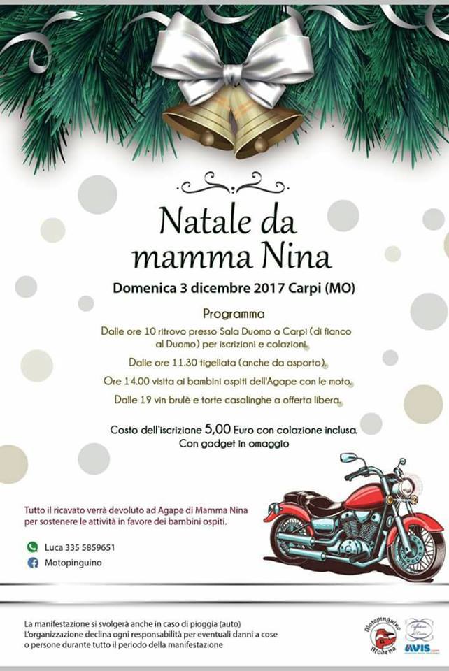 Anche quest’anno Motopinguino rinnova l’impegno natalizio a favore dell’Agape di Mamma Nina di Carpi, eccezionalmente con due diversi appuntamenti.
