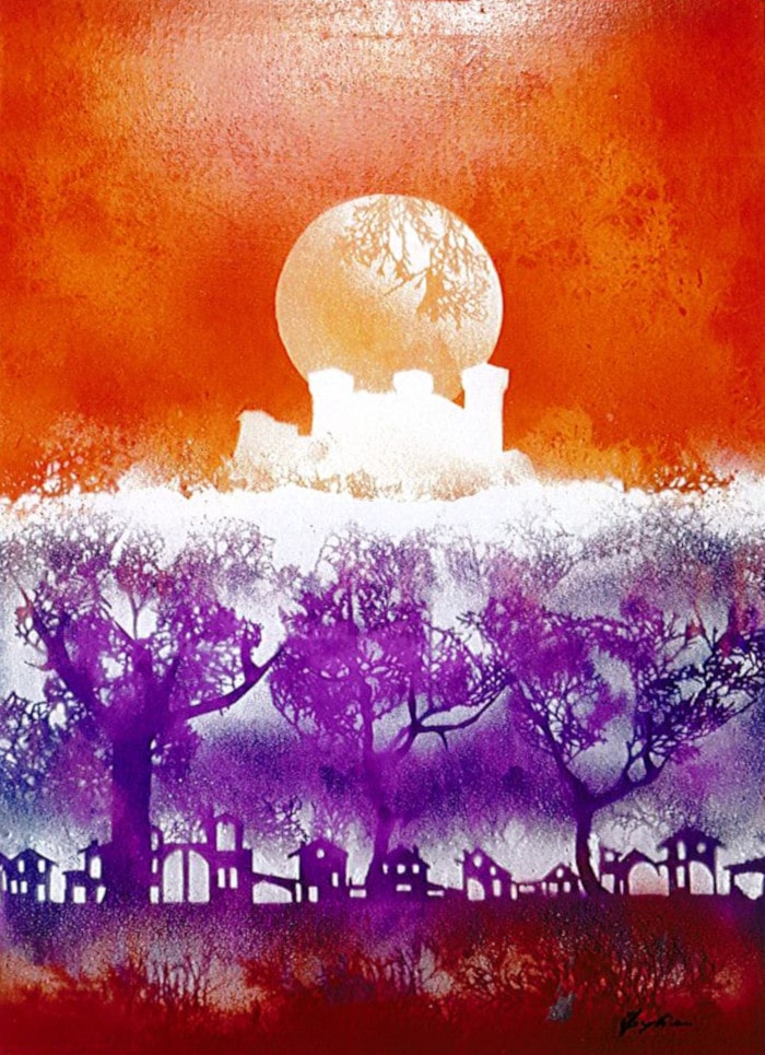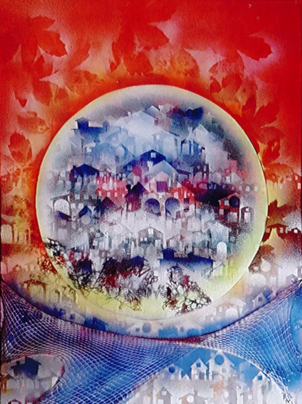 I lavori esposti rendono partecipi di una coinvolgente miscela di colori nebulizzati, permettono di cogliere l’evanescenza di paesaggi onirici ed introspettivi e di leggere sentimenti e passioni attraverso la miriade di infinite gocce di colore che velano la tela.