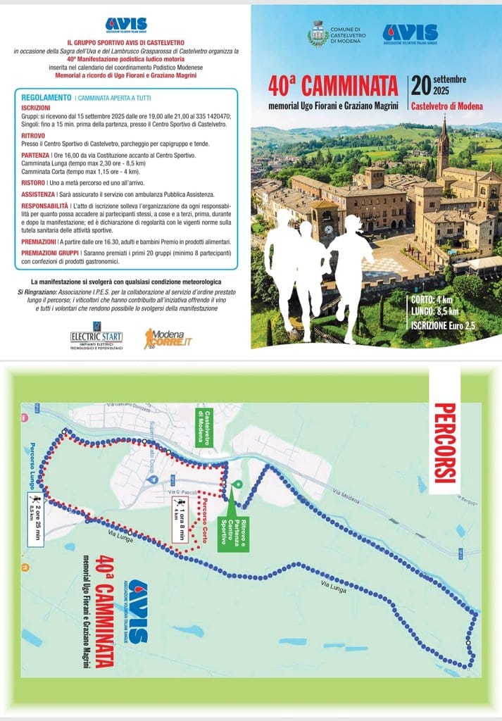 Come da tradizione abbiamo il percorso lungo di km 8,5 (tratteggiato in blu) ed il percorso corto di km 4 (tratteggiato in rosso); ci saranno i punti ristoro e a questo proposito ringraziamo i proprietari terrieri che ci permettono di appoggiarci sulle loro proprietà con i nostri materiali e i beni per rifocillare i partecipanti.