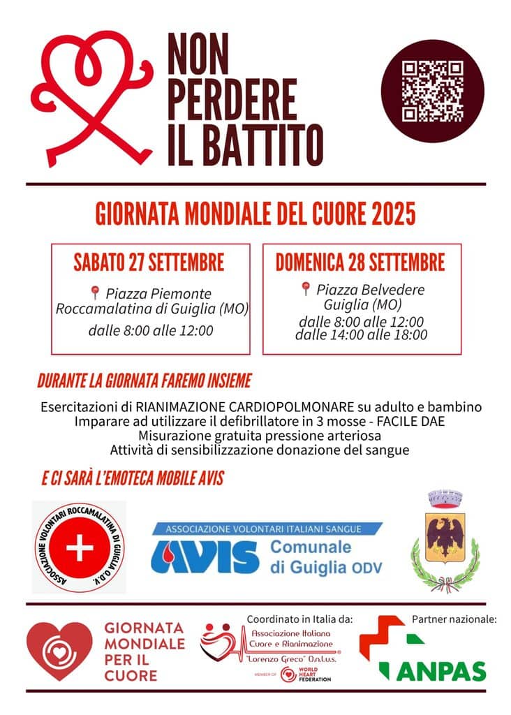 Tutti sappiamo che la collaborazione è importante, nel lavoro, nella vita e sì, anche tra associazioni. Beh, tra noi AVIS di Guiglia e AVR di Rocca Malatina c’è una bella sinergia, quindi anche questa volta saremo presenti alla Giornata Mondiale del Cuore 2025 con i nostri ” cugini ” in un campo che riguarda molto da vicino anche noi avisini. Nell’ immagine trovate il volantino con le date e i luoghi dove saremo presenti.