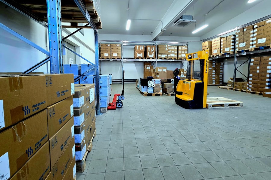 Su un’area di 250 mq si concentrano i due magazzini riservati alla logistica e allo stoccaggio esclusivo di tutti i materiali sterili e monouso, dalle sacche, alle provette, ai circuiti per la plasmaferesi, gli emoglobinometri, i defibrillatori, il materiale d’uso per i prelievi, i medicinali. L’altra area di circa 400 mq è destinata al ricovero dei mezzi, mentre i rimanenti locali e il sottotetto ospiteranno gli uffici e il materiale d’archivio.