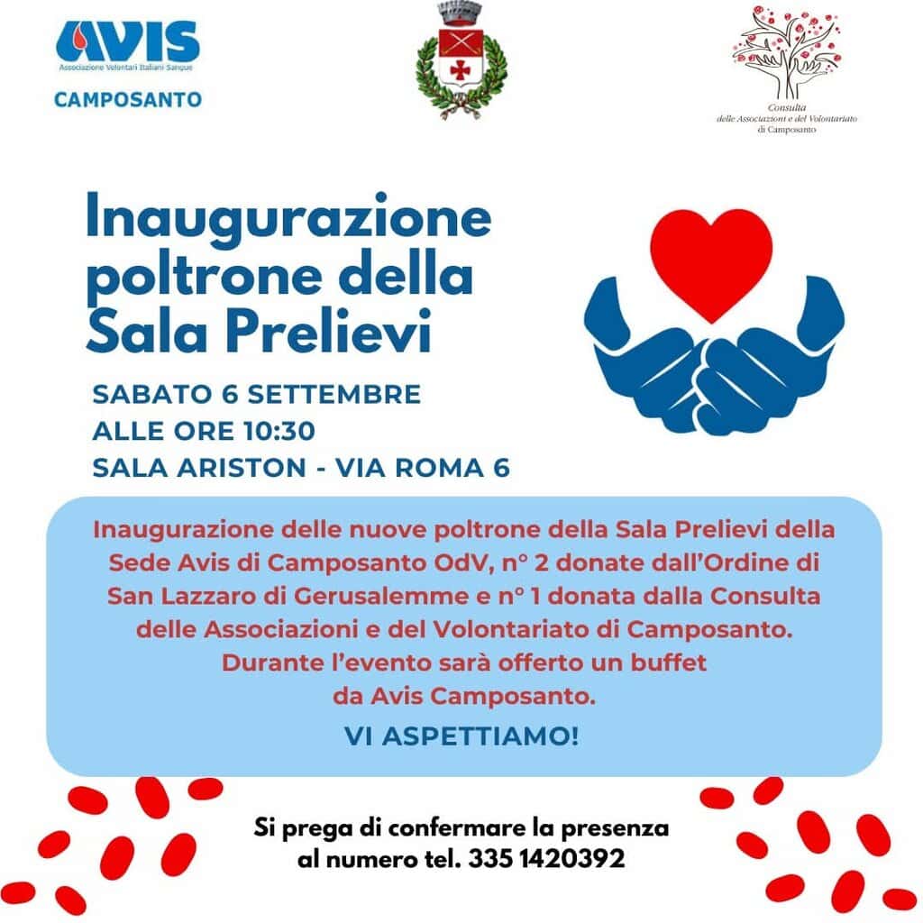 Grazie a generose donazioni sono in arrivo tre nuove poltre per la sala prelievi all’Avis di Camposanto. Un evento da festeggiare insieme!