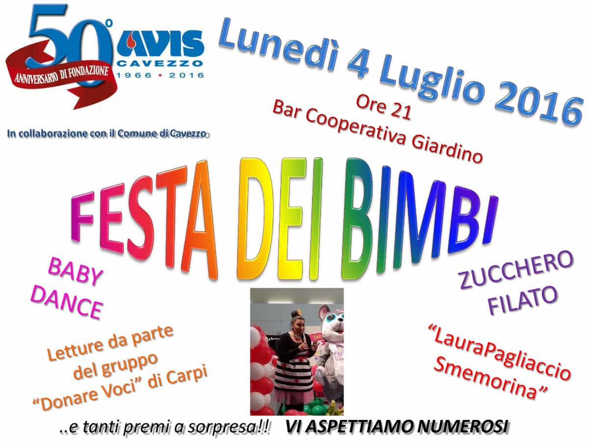 festa dei bimbi con con “LauraPagliaccio Smemorina”, letture del gruppo “Donare Voci” di Carpi, Baby dance, zucchero filato e premi a sorpresa.
