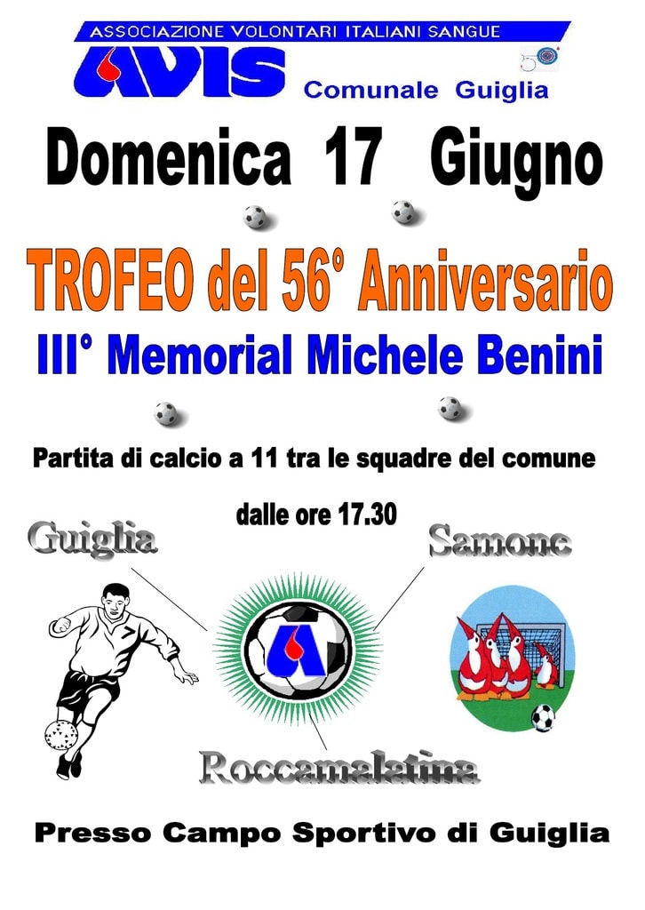 Trofeo di calcio fra le squadre di Guiglia, Roccamalatina e Samone, domenica 17 giugno a Guiglia.