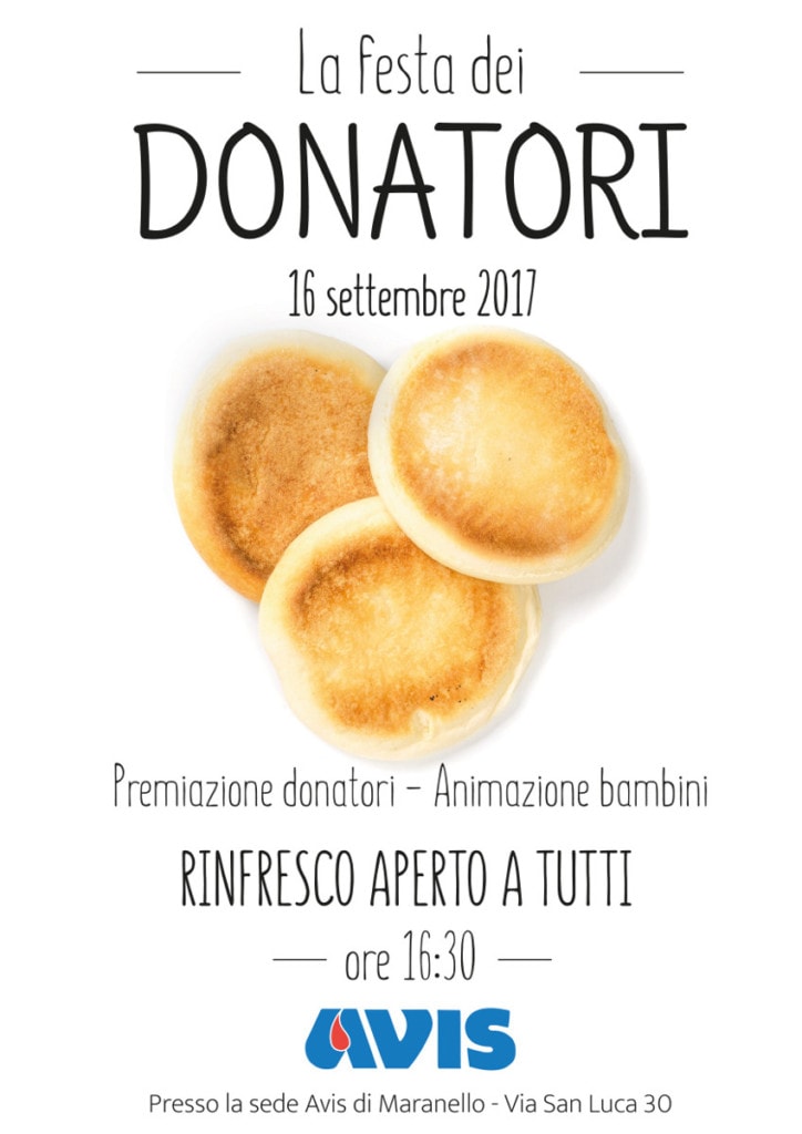 Avis Maranello organizza la Festa del donatore Sabato 16 settembre con animazione per bambini e premiazione dei donatori.