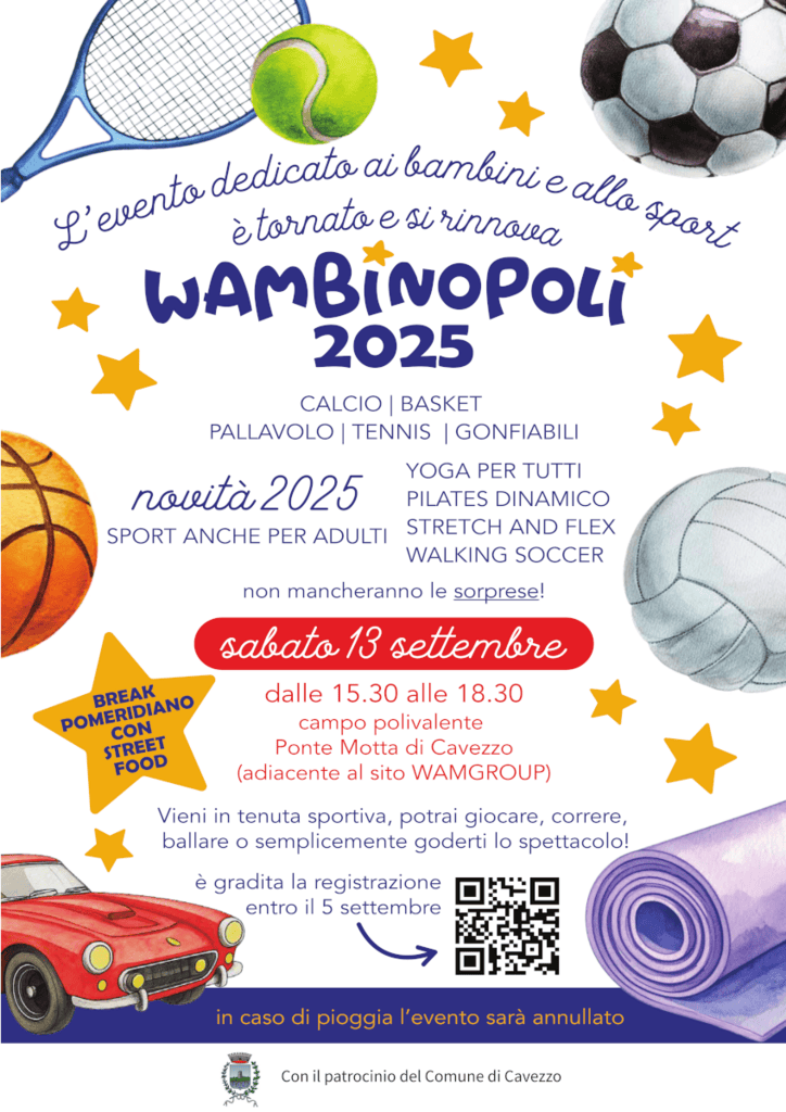 Iniziativa aperta a tutta la popolazione organizzata dalla ditta Wam nel campo polivalente di Ponte Motta di Cavezzo. Le Avis dell’Area Nord della provincia di Modena saranno presenti con volontari che organizzeranno momenti di animazione per i bambini.