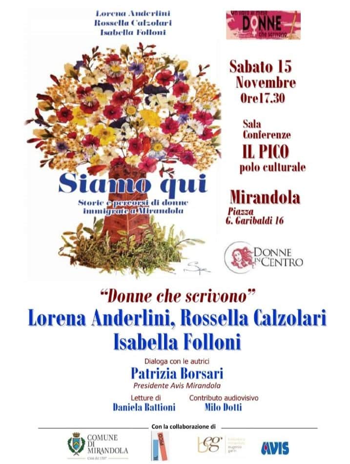 Le autrici Lorena Anderlini, Rossella Calzolari, Isabella Folloni e Patrizia Borsari, presidente Avis Mirandola, vi aspettano sabato 15 novembre, ore 17:30, presso la Sala Conferenze “Il Pico”, polo culturale a Mirandola.