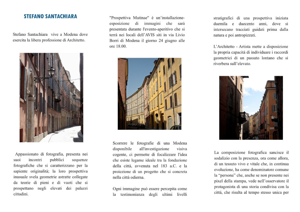 Mostra fotografica di Stefano Santachiara dal titolo “Prospettiva Mutinae”. Inaugurazione sabato 24 giugno alle ore 18.00. La mostra resterà aperta fino al 28 luglio.