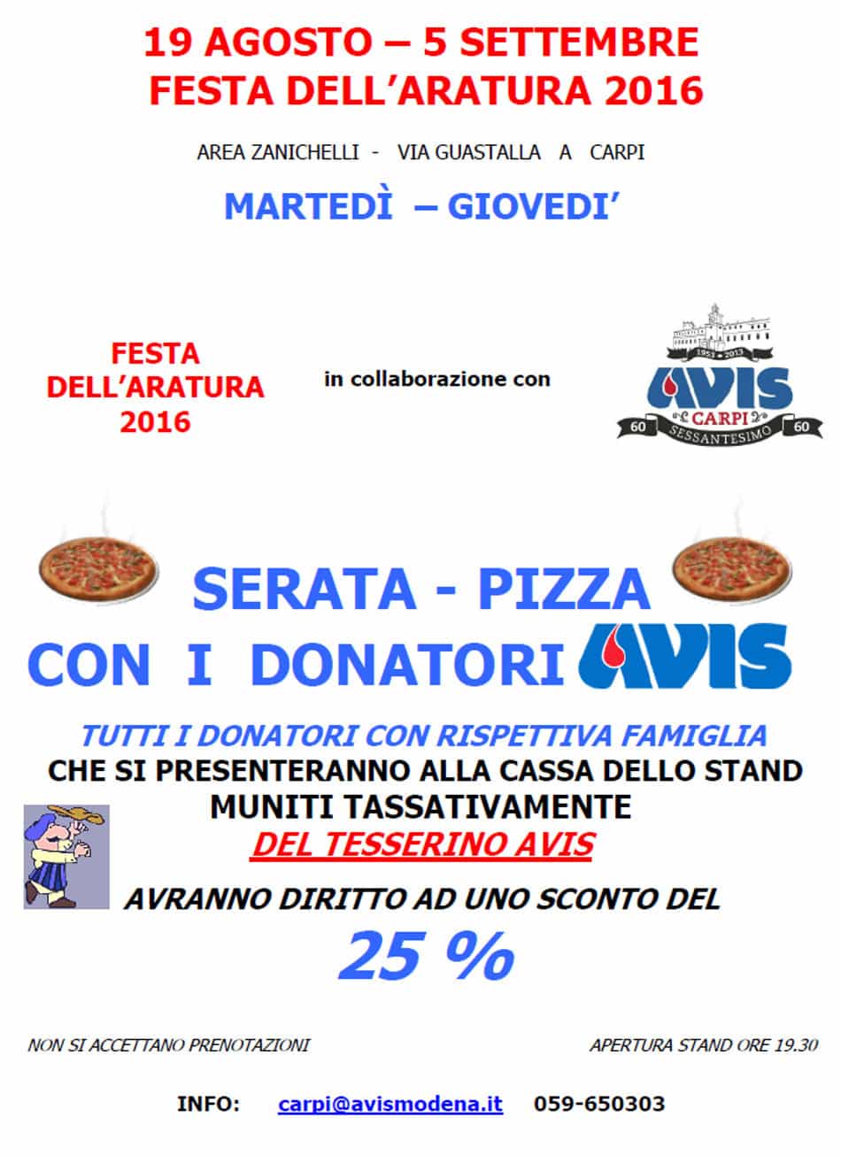 Festa sociale con premiazione dei donatori, domenica 18 settembre a Sassuolo. Per il pranzo, prenotazioni obbligatorie entro venerdì 16 settembre. Avis Sassuolo tel:0536:812674